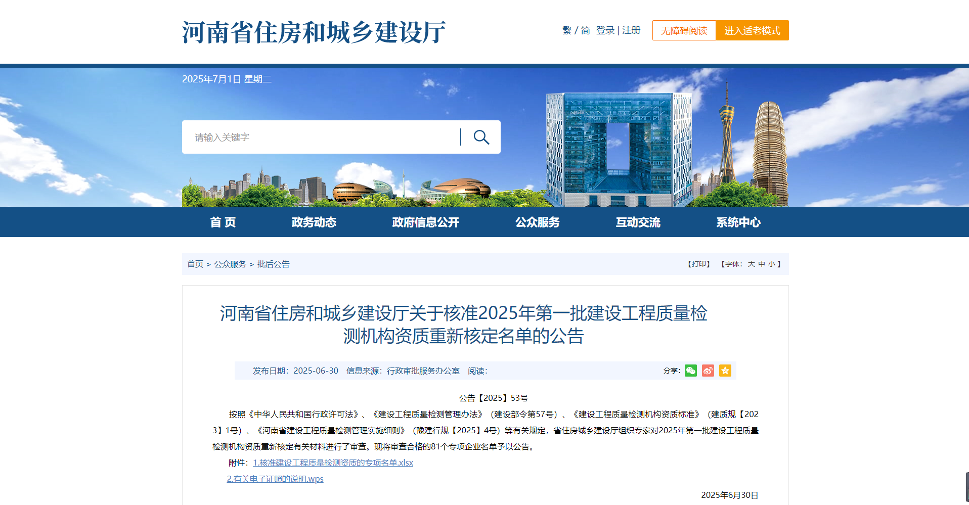 熱烈祝賀我司通過河南省住建廳2025年第一批建設工程質(zhì)量檢測機構資質(zhì)重新核定?。。?